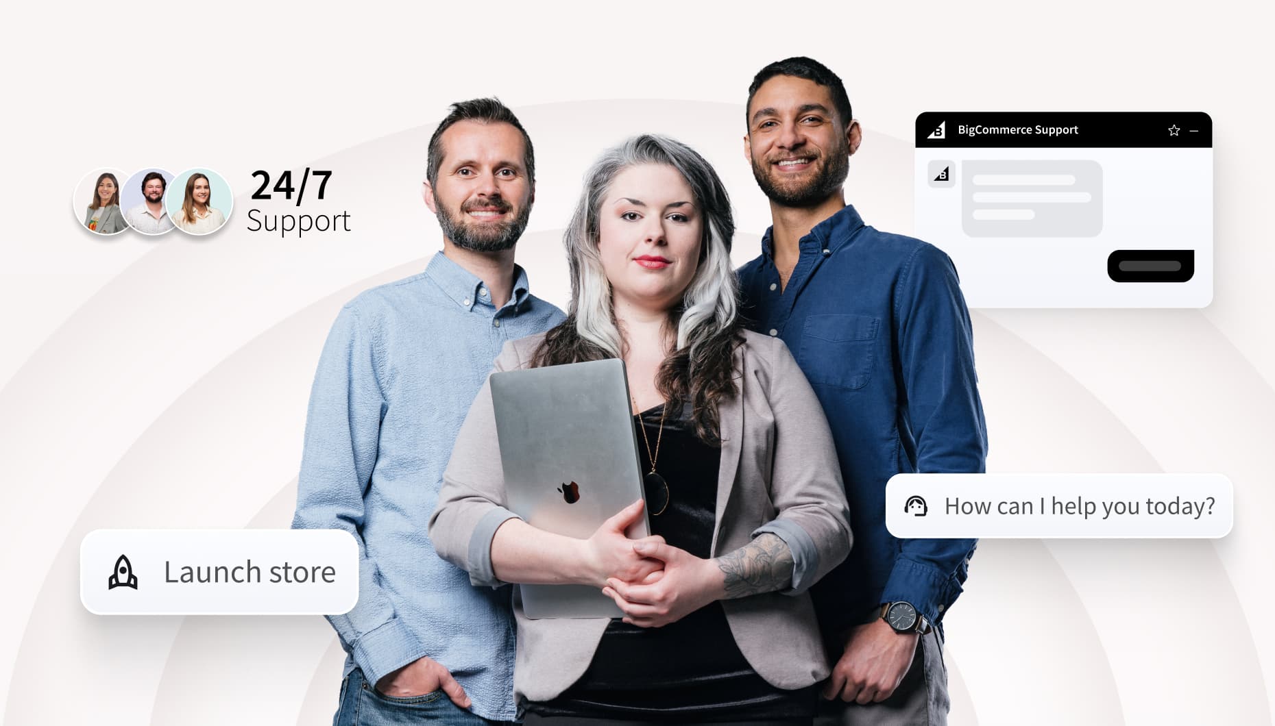 Ayez l’esprit tranquille en sachant que l’assistance en direct 24h/24 et 7j/7 des employés de BigCommerce n’est qu’à un coup de téléphone, et que les services de réussite, de lancement ou de migration sont disponibles avant, pendant et après le lancement.